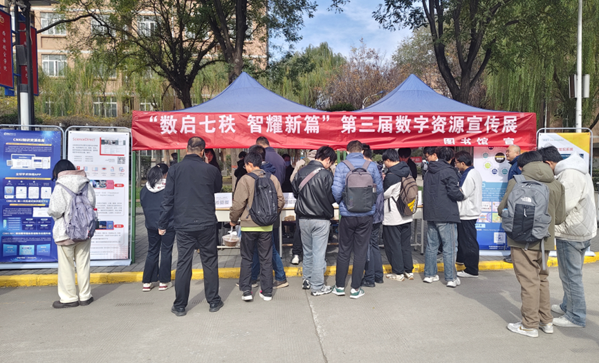 11月14日、17日,图书馆在莲湖、阎良两校区举办“数启七秩,智耀新篇”第三届数字资源宣传展。活动以海报展示、现场咨询、问卷调查、有奖互动等多元形式,集中呈现图书馆丰富的数字资源,吸引500余名师生驻足参与。