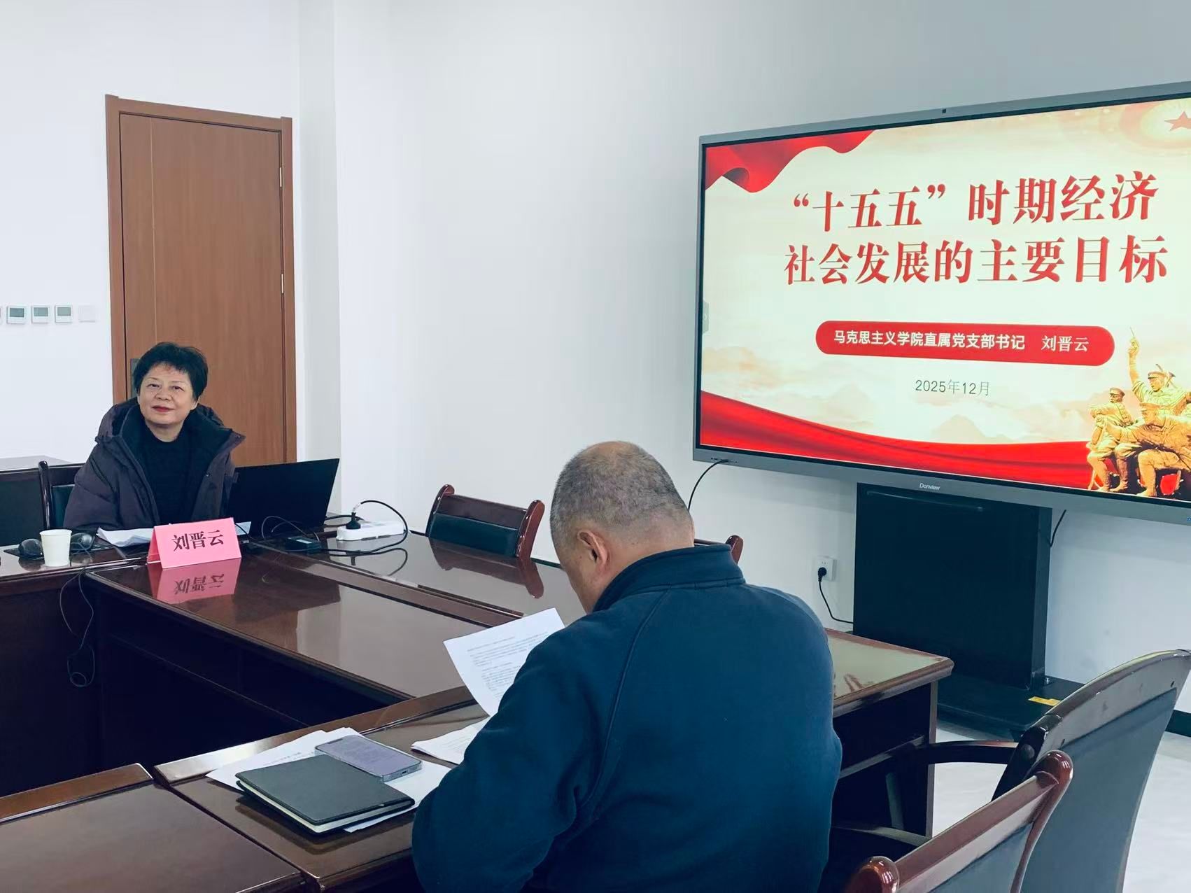 邀请校党委党的二十届四中全会精神宣讲团成员、马克思主义学院直属党支部书记刘晋云作专题辅导报告。刘晋云围绕“十五五”时期经济社会发展的主要目标,阐述中共中央关于制定国民经济和社会发展第十五个五年规划的建议,解读“十五五”时期确保基本实现社会主义现代会取得决定性进展的战略要求,阐明“十五五”时期经济社会发展主要目标的科学内涵,结合学校和图书馆发展剖析制定和实现“十五五”发展规划的重要性。
