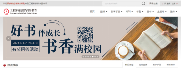 登录“工程科技数字图书馆”,从首页宣传栏处进入,扫描活动二维码参与答题。